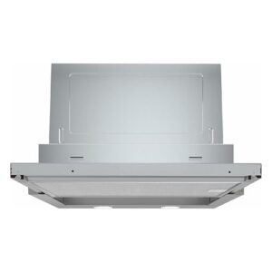 Die Bosch DFR067A52 Serie 4 Flachschirmhaube ist eine 60 cm breite Dunstabzugshaube, die für den Einbau in Oberschränke konzipiert ist. Mit ihrem silbermetallischen Finish fügt sie sich unauffällig in moderne Küchen ein. Das Gerät arbeitet mit einem EcoSilence Drive Motor, der leise und energieeffizient läuft. Es unterstützt sowohl Abluft- als auch Umluftbetrieb (passendes Zubehör erforderlich) und bietet drei Leistungsstufen bei einer maximalen Abluftleistung von 388 m³/h. Die Energieeffizienzklasse A unterstreicht den sparsamen Betrieb.