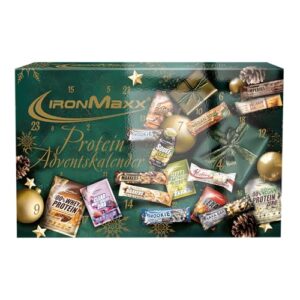 Der IronMaxx Protein Adventskalender 2025 bietet 24 proteinreiche Einzelportionen mit einem Gesamtgewicht von rund 881 g. Hinter jedem Türchen befindet sich ein Fitnessprodukt aus dem IronMaxx-Sortiment, darunter Proteinriegel, Shakes, Drinks und Snacks. Enthalten sind verschiedene Varianten wie 100 % Whey Protein, Vegan Protein Zero, Lava Bar, SqueeZero, Prookie und Imperius. Die Produkte zeichnen sich durch einen hohen Eiweißgehalt aus und sind auf den Bedarf von sportlich aktiven Personen ausgerichtet, die Wert auf eine proteinbetonte Ernährung legen.