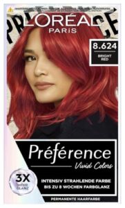 L'Oréal Paris Intensive dauerhafte Haarfarbe ist eine permanente Gel-Haarfarbe in der Nuance Bright Red (8.624). Sie ist ammoniakfrei und für alle Haartypen geeignet, mit Schwerpunkt auf normalem Haar. Die Formel basiert auf leistungsstarken Farbstoffen und ist auf ein gleichmäßiges Farbergebnis ausgelegt. Die Verpackung enthält ein integriertes 150-ml-Mix-Kit, das ein strukturiertes Auftragen ermöglicht. Geliefert wird ein einzelner Artikel mit klar definierter Anwendung und standardisierter Dosierung.