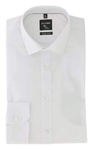 OLYMP Herren Businesshemd 6 SuperSlim ist ein langärmeliges Businesshemd mit stark tailliertem, körpernahem Schnitt. Die Passform super slim richtet sich an athletische Proportionen und sorgt für eine klare, schmale Silhouette. Das Pin-Point-Gewebe besteht aus 97 % Baumwolle und 3 % Elasthan und bietet durch den integrierten Comfort-Stretch eine kontrollierte Bewegungsfreiheit. Der Modern-Kent-Kragen unterstreicht die sachliche Ausrichtung und eignet sich für formelle Anlässe ebenso wie für den strukturierten Büroalltag.