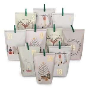 Die stabilen Bodenbeutel bieten ausreichend Platz für kleine Überraschungen wie Süßigkeiten, Spielzeug oder Schreibwaren. Sie sind wiederverwendbar und können jährlich neu befüllt werden. Dadurch reduziert sich der Materialverbrauch, und der Kalender kann langfristig eingesetzt werden. Die Kombination aus Papierbeuteln und Aufklebern ermöglicht eine strukturierte und saubere Gestaltung ohne großen Aufwand.