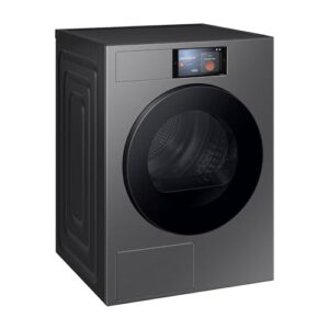 Der Samsung DV90F09F4SU2 Wärmepumpentrockner DV90F/24 ist ein Frontlader mit einer Kapazität von 9 Kilogramm und Energieeffizienzklasse A (-25 %). Das Gerät arbeitet mit moderner Wärmepumpentechnologie und ist auf eine gleichmäßige, energieeffiziente Trocknung ausgelegt. Das Gehäuse besteht aus Edelstahl in Schwarz, der Türanschlag ist wechselbar. Durch das AI Home Touch-Display lässt sich der Trockner direkt oder über die WiFi-SmartThings-App bedienen. Sprachsteuerung und hilfreiche Energieeffizienz-Tipps ergänzen die Steuerungsoptionen.