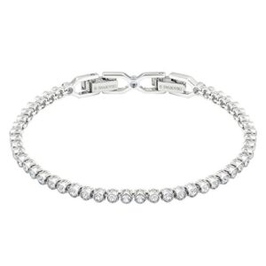 Das Swarovski Imber Emily Kollektion Tennis Armband besteht aus rhodiniertem Metall und kesselgefassten Kristallen. Mit seiner klaren, minimalistischen Gestaltung wirkt es dezent und gleichzeitig elegant. Die weißen Kristalle sind gleichmäßig in einer klassischen Tennis-Kettenstruktur angeordnet und reflektieren das Licht auf subtile Weise. Hergestellt in Vietnam, zeigt das Armband eine Kombination aus präziser Verarbeitung und zurückhaltendem Design.