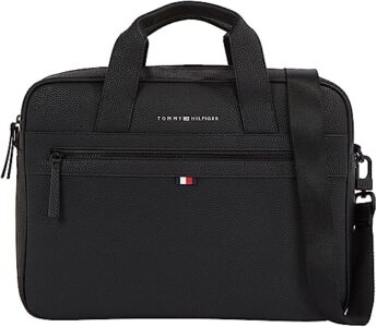 Die Tommy Hilfiger Herren Laptoptasche Essential ist für Laptops bis 14 Zoll geeignet und in der Farbe Schwarz (Black) erhältlich. Mit den Maßen 40 x 10 x 30 cm bietet sie ausreichend Stauraum für den Arbeitsalltag oder auf Reisen. Gefertigt aus 100 % Polyurethan ist die Tasche strapazierfähig und pflegeleicht. Zwei Tragegriffe und ein abnehmbarer Schulterriemen ermöglichen flexibles Tragen, während das dezente Tommy Hilfiger Branding das schlichte Design abrundet.