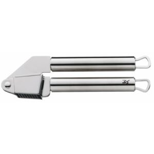 Die WMF Profi Plus Knoblauchpresse bietet dir eine sachliche und belastbare Lösung, wenn du Knoblauch effizient verarbeiten möchtest. Das Werkzeug besteht aus Cromargan Edelstahl 18/10 mit teilmattierter Oberfläche. Dieses Material ist rostfrei, formstabil, hygienisch und beständig gegenüber Säuren, wodurch sich das Gerät für den dauerhaften Einsatz eignet. Die Funktionsteile sind fest im Griff einzementiert, was zu einer stabilen Konstruktion ohne lose Elemente führt.